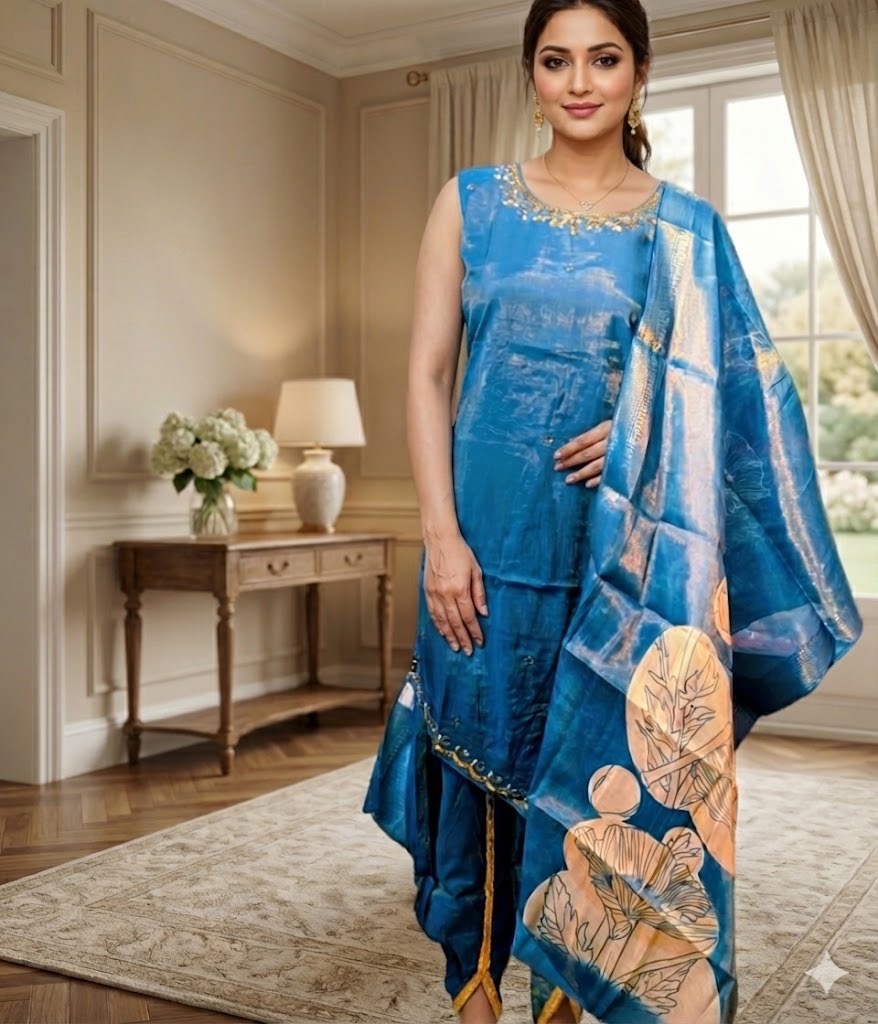 🌿 Elegant Silk-Blend Ethnic Set with Dupatta