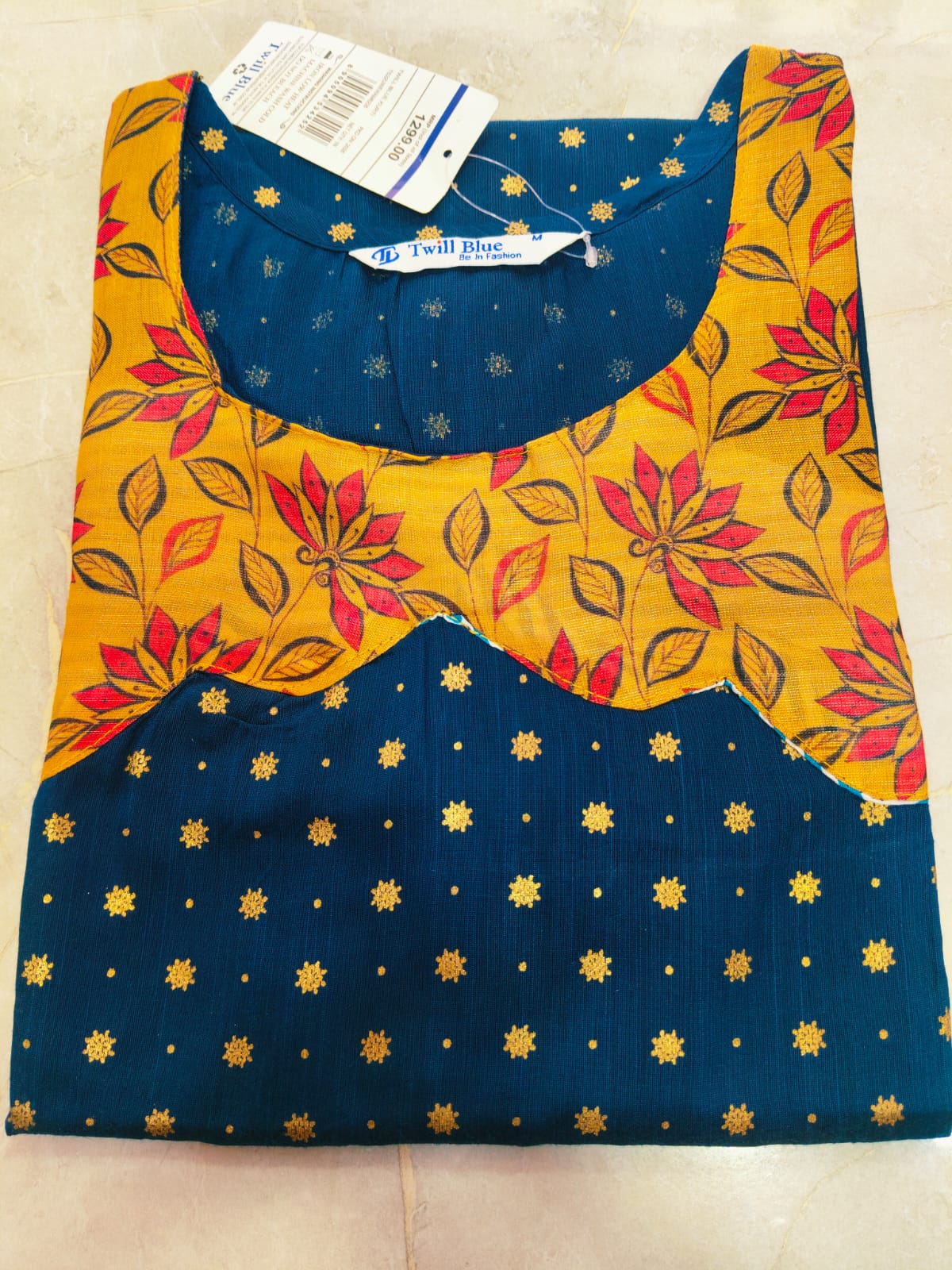 / twill blue scalp design festive kurtis